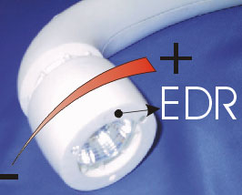 Vor der Anwendung; Energiedosis mit Hilfe des Energie-Dosis-Reglers (EDR) einstellen (Blid links) Das Handgerät läßt sich mit einem leichten druck auf das Handgerät richtung Anwendungsgebiet einschalten.(Bild rechts) |