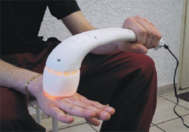 Ltt Handgerät auf die Handinnen- und Außenflächen beider Hände, drei mal hintereinander jeweils für ca. 20 sek. mit ca. 3 sek. zwischenpause Anwenden (*) |