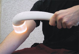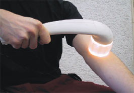 Die inneren Seiten der beiden Ellenbogengelenke wie im Punkt 2 angedeutet mit dem Ltt Handgerät behandeln. |
